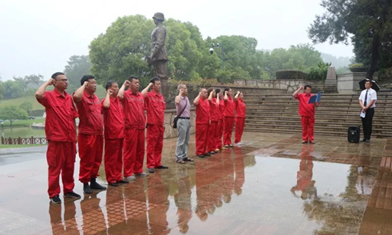6月21日上午,陰雨綿綿,寄托著對先烈的無限哀思。一行人來到武漢抗戰(zhàn)紀(jì)念園前,在雨中排列整齊,一同高唱中華人民共和國國歌,并敬獻(xiàn)花籃,向英勇獻(xiàn)身的烈士默哀致敬。隨后,在革命先烈的見證下,全體黨員神情莊重,堅(jiān)定地舉起右拳,重溫入黨誓詞。簡單的緬懷儀式,卻飽含著對先輩的崇敬。儀式結(jié)束后,大家參觀了紀(jì)念館,跟隨者講解員的腳步,大家觀看了一件件珍貴的革命文物,軍民浴血奮戰(zhàn)的照片、珍貴的抗戰(zhàn)文物、日軍侵華罪證等,深深震撼人心。