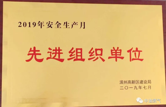 近日,濱州高新區(qū)建設(shè)局授予濱州中油燃?xì)飧咝掠邢挢?zé)任公司 “2019年安全生產(chǎn)月先進(jìn)組織單位”稱號(hào),以表彰濱州高新公司在2019年度安全生產(chǎn)月工作中所取得的成效。