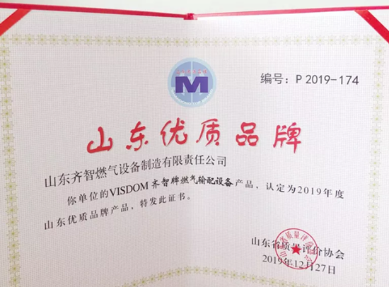 近日,2019年度山東優(yōu)質品牌審定結果揭曉。山東齊智設備公司燃氣輸配設備產(chǎn)品被認定為2019年度山東優(yōu)質品牌。