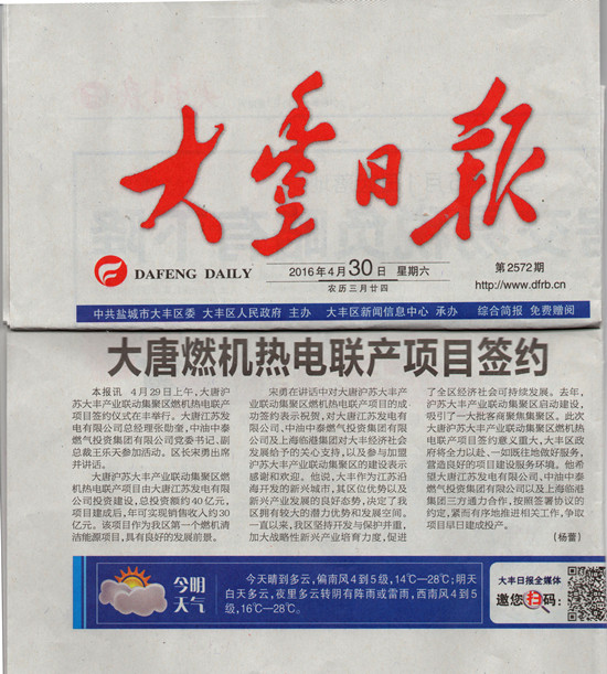 大唐燃?xì)鉄犭娐?lián)產(chǎn)項(xiàng)目簽約