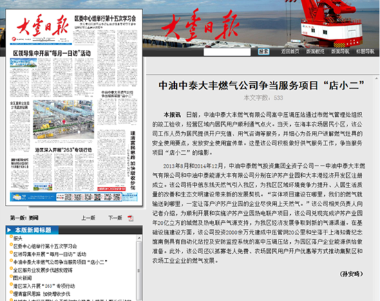 中油中泰大豐燃?xì)夤緺幃?dāng)服務(wù)“店小二”