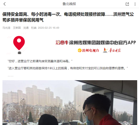《魯北晚報(bào)》:濱州中油燃?xì)舛啻氩⑴e保居民用氣