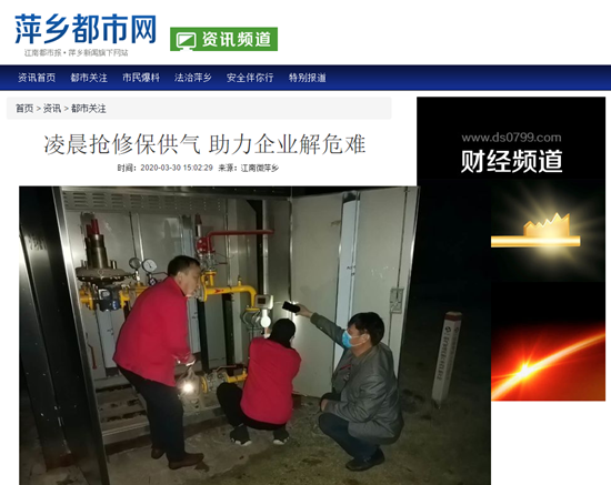 《萍鄉(xiāng)都市報(bào)》:凌晨搶修保供氣 助力企業(yè)解危難