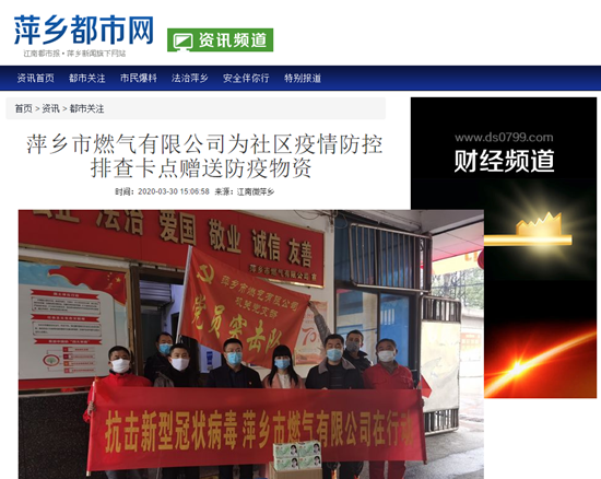 《萍鄉(xiāng)都市報》:萍鄉(xiāng)燃氣為社區(qū)疫情防控捐贈防疫物資