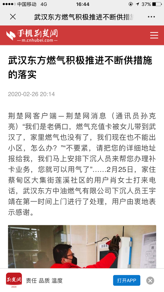 《手機荊楚網(wǎng)》:武漢東方燃氣積極推進不斷供措施的落實