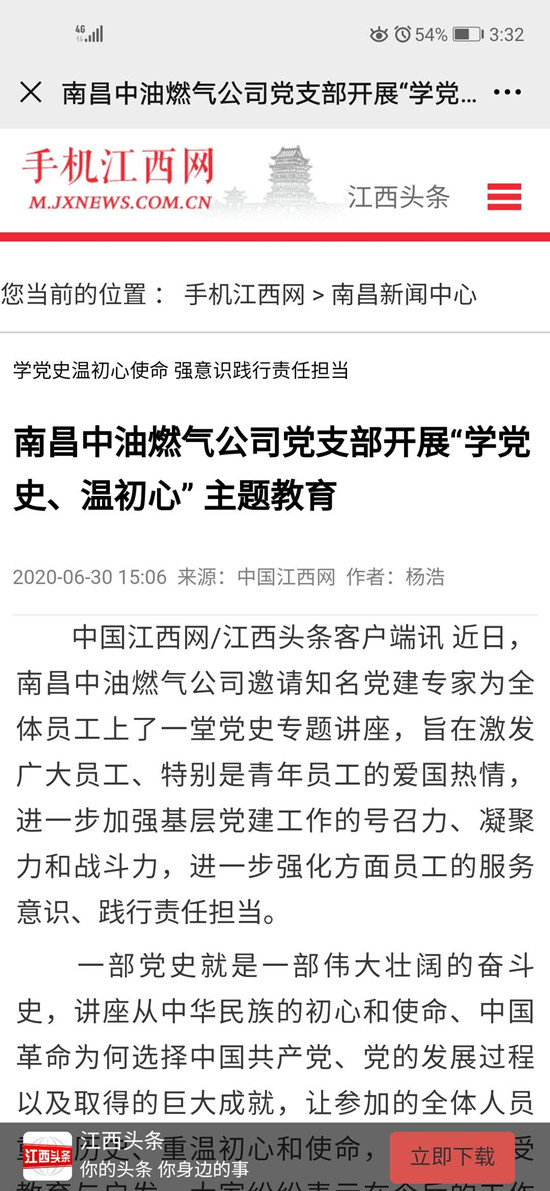 《南昌新聞中心》南昌中油燃?xì)恻h支部開展“學(xué)黨史,溫初心”主題教育