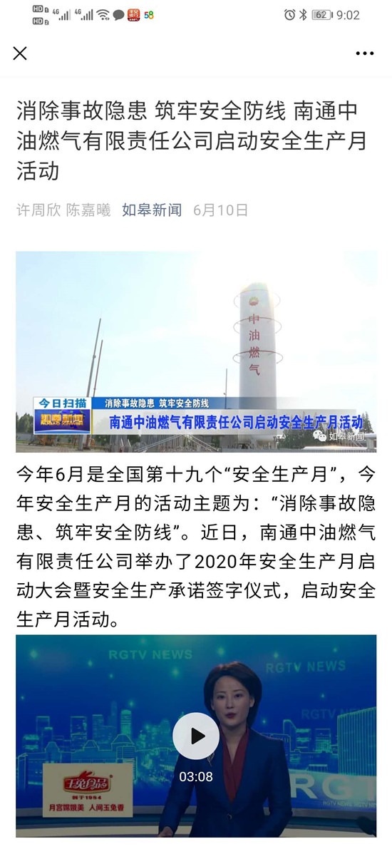 《如皋新聞》消除事故隱患 筑牢安全防線--南通中油燃?xì)鈫?dòng)安全生產(chǎn)月活動(dòng)
