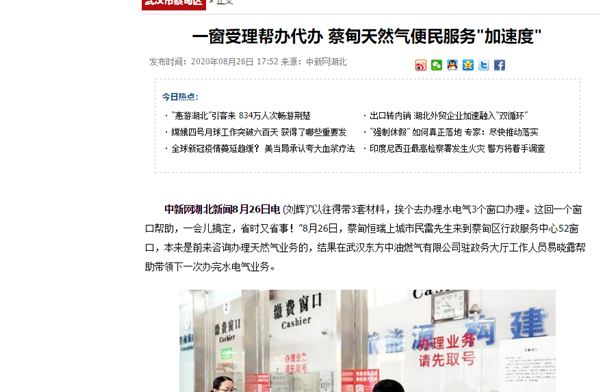《中新網(wǎng)湖北》一窗受理幫辦代辦 蔡甸天然氣便民服務(wù)“加速度”