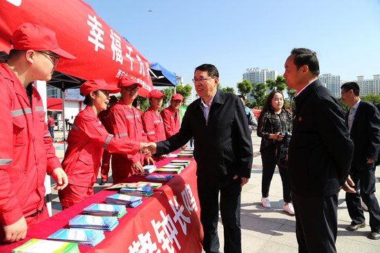 國(guó)務(wù)院巡查組組長(zhǎng)史玉波在西寧市市長(zhǎng)張曉容、青海省安監(jiān)局局長(zhǎng)毛占彪等領(lǐng)導(dǎo)的陪同下來到西寧公司宣傳活動(dòng)現(xiàn)場(chǎng),張曉容市長(zhǎng)介紹了公司安全生產(chǎn)工作的基本情況,史玉波與燃?xì)夤拘麄魅藛T親切握手并交談。