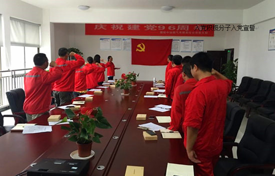 會議開始,全體黨員及兩名入黨積極分子在神圣黨旗下,右手緊握,重溫入黨宣誓詞。隨后,黨支部回顧了2017年上半年黨支部工作,并將下半年工作計劃進行匯報,黨員同志們對針對上半年工作及下半年計劃暢所欲言的交流,提出各自寶貴的建議與意見。通過面對面的交流,增進了同志們之間的友誼和感情,增強了黨支部的凝聚力和向心力,營造了敢講真話、互相幫助、積極向上的良好工作氛圍。最后,書記姜文喜主持了“兩學(xué)一做”培訓(xùn)教育培訓(xùn)并主講。