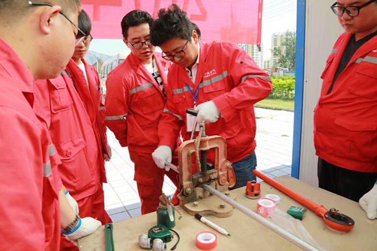 這次培訓(xùn)由實操講師在工位現(xiàn)場講授、操作演示,通過兩天的學(xué)習(xí),學(xué)員初步掌握了繪制安裝施工圖、鍍鋅管手工切割、手工套絲,管道簡單安裝等方面的知識,著重提升對居民燃氣管道戶內(nèi)安裝動手能力。學(xué)員們結(jié)合自身工作實踐,積極參與課程互動討論,提出自己的問題和見解,大家學(xué)技術(shù)、提技能的愿望強烈,實操培訓(xùn)收到良好效果。
