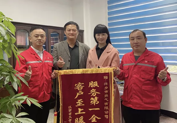 12月23日,江西省天奇汽車零部件有限公司負責人送來一面 “服務第一 全心為民 客戶至上暖至人心”的錦旗,對萍鄉(xiāng)市燃氣有限公司“急客戶所急 解客戶所困”的優(yōu)質、高效服務表示衷心的感謝。