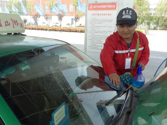 此次活動(dòng)的主要內(nèi)容為:要求充裝人員利用為車輛充氣的短暫時(shí)間,嫻熟地為每一輛車清洗前擋風(fēng)玻璃及后視鏡。一套流程下來,既滿足了客戶用氣的需求,又通過這短暫的時(shí)間拉近與客戶的距離,讓客戶感受到“貼心而溫馨”。