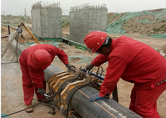 不同于其他城市的綜合管廊,西寧市的天然氣管道廊體采用的是“掛耳艙”的方式,不規(guī)則角度、坡度很多,而且是與管廊主體同時(shí)施工,存在交叉作業(yè),這就對(duì)燃?xì)夤艿朗┕ぴ黾恿撕芏嚯y度,但這些都阻擋不了“專(zhuān)業(yè)化機(jī)組”施工的腳步。作業(yè)中心從聚乙管道的材料特性出發(fā),依托于多年的PE焊接施工經(jīng)驗(yàn),在施工的過(guò)程中開(kāi)發(fā)出許多新的焊接輔助方式,從而很好的克服了諸多難題,保證了管廊工程的順利進(jìn)行,也為今后的工作積累了寶貴的經(jīng)驗(yàn)。