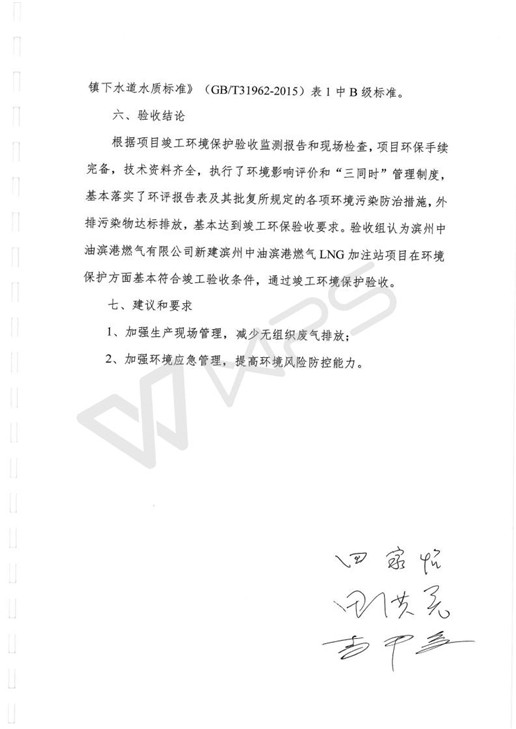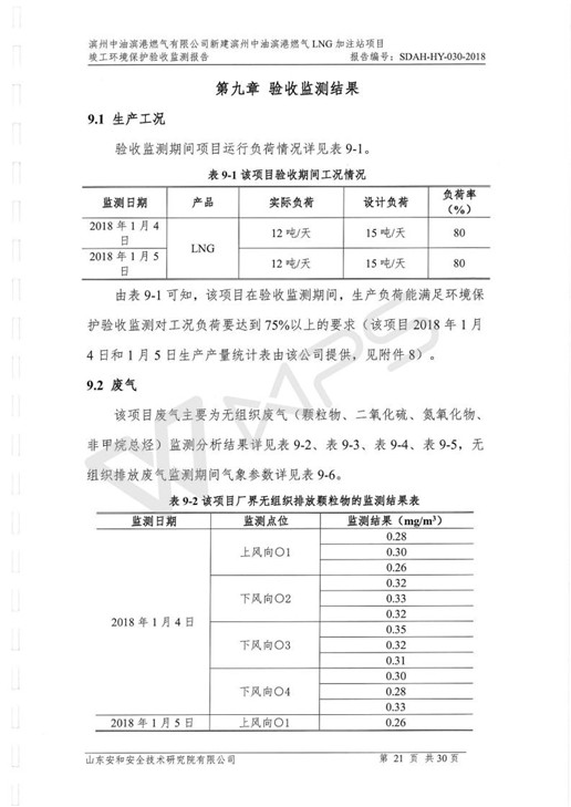 新建濱州中油濱港燃氣LNG加注站項目竣工環(huán)境保護驗收監(jiān)測報告