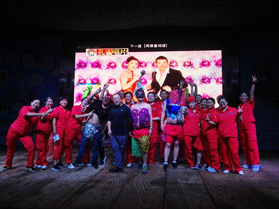 拓展活動(dòng)的亮點(diǎn)在每一批第一天晚飯之后,隊(duì)員們不僅觀看了拓展中心的少數(shù)民族特色表演,與演員和其他游客一起體驗(yàn)了民族活動(dòng),還開展了自己的晚會(huì)。大家紛紛上臺(tái)獻(xiàn)唱獻(xiàn)舞,并且用道具做了反串時(shí)裝展示??粗綍r(shí)爺們兒的男同事穿上自己做的“草裙”在舞臺(tái)上婀娜多姿的走動(dòng),大家都忍不住哈哈大笑。晚會(huì)上,總經(jīng)理陳剛也為大家?guī)砹艘皇住兜却?,將晚?huì)氣氛推向高潮。