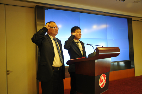 董事高發(fā)連宣讀了董事會決議:聘任羅強為中油燃氣投資集團有限公司副總裁、中油中泰燃氣投資集團有限公司副總裁,聘任胡壹為中油中泰燃氣投資集團有限公司副總裁;許鐵良主席向兩位高管頒發(fā)了聘任書;兩位高管作了任職宣誓并表態(tài)發(fā)言。