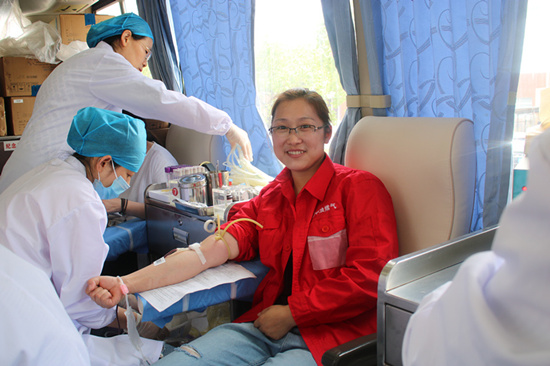 一切準(zhǔn)備工作完畢后,獻(xiàn)血員工們?cè)谘竟ぷ魅藛T的指導(dǎo)下,認(rèn)真填寫獻(xiàn)血記錄表、測(cè)量血壓、抽血化驗(yàn),經(jīng)血液檢測(cè)合格后向血站無(wú)償獻(xiàn)血。