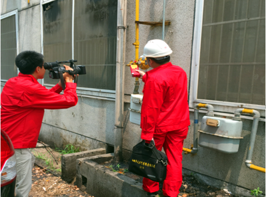 為保證工商業(yè)用戶日常安全用氣, 6月12日,仙桃中油燃?xì)庥邢薰狙?qǐng)仙桃電視臺(tái)記者和安檢小組工作人員一起走進(jìn)工商業(yè)用戶天然氣安檢現(xiàn)場(chǎng)。
