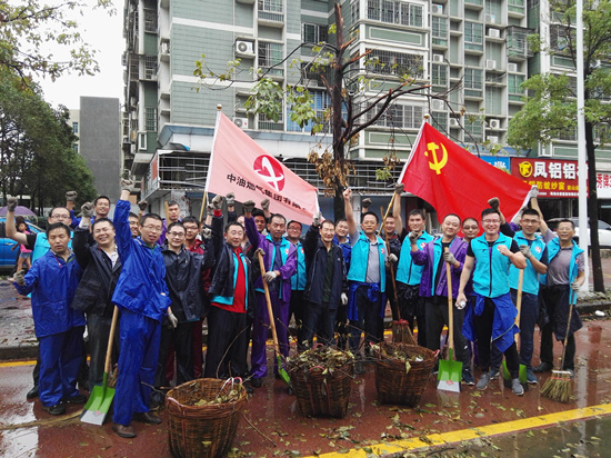 8月23日,颱風(fēng)“天鴿”、“帕卡”陸續(xù)登陸,處於颱風(fēng)正面登陸點(diǎn)的珠海市區(qū)受災(zāi)尤為嚴(yán)重,市容市貌遭受很大損毀。8月28日,中油燃?xì)饧瘓F(tuán)響應(yīng)市委市政府的號(hào)召,冒著風(fēng)雨,自發(fā)組織40餘名員工,與解放軍戰(zhàn)士、街道辦、義工自願(yuàn)者一起上街參加義務(wù)勞動(dòng)。積極開展道路清障、設(shè)施修復(fù)、衛(wèi)生清掃等工作,全力清除臺(tái)風(fēng)災(zāi)痕,恢復(fù)美麗市容,為珠海的重建盡一份綿薄之力。