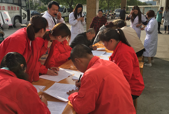 上午7點(diǎn),南通公司員工就早早地來(lái)到了衛(wèi)生服務(wù)站。在工作人員的引導(dǎo)下,參加獻(xiàn)血的員工仔細(xì)填寫血站提供的獻(xiàn)血登記表,抽取血液樣本檢查,錄入個(gè)人資訊,在所有條件均滿足要求的前提下,抽取血液。不管是體檢還是采血,大家都有序地排著隊(duì)伍,有說(shuō)有笑的,一方面是為了減輕獻(xiàn)血前的緊張心理而互相鼓勵(lì),另一方面更是為自己的無(wú)償獻(xiàn)血行為感到自豪。