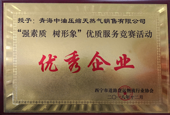 12月14日,青海中油壓縮天然氣銷售有限公司車隊(duì)在西寧市道路貨運(yùn)物流行業(yè)協(xié)會主辦的道路貨運(yùn)物流行業(yè)協(xié)會年會(暨安全生產(chǎn)大會)上,榮獲獲《“強(qiáng)素質(zhì)樹形象”優(yōu)質(zhì)服務(wù)競賽優(yōu)秀企業(yè)》獎(jiǎng)。