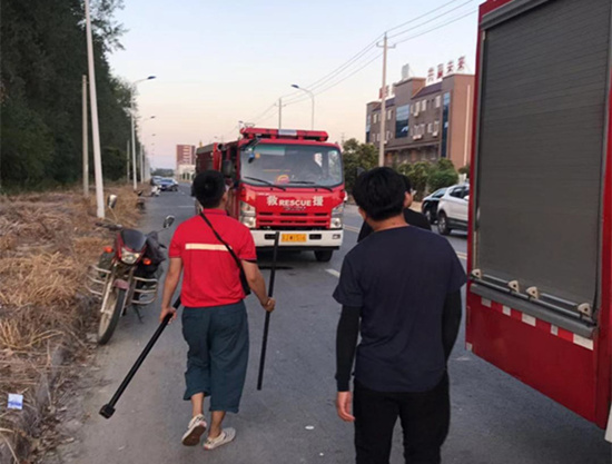 8月20日17時(shí)左右,滬蘇集聚區(qū)內(nèi)升起了滾滾濃煙,伴隨著陣陣警笛聲,中油中泰大豐燃?xì)庥邢薰镜谝粫r(shí)間組織巡線(xiàn)、安全、維搶修等人員沖向濃煙方向查看情況。到達(dá)火災(zāi)現(xiàn)場(chǎng)雙胞胎飼料後,搶險(xiǎn)組肖亮亮立馬與廠(chǎng)內(nèi)負(fù)責(zé)人以及消防隊(duì)員溝通,詢(xún)問(wèn)火災(zāi)發(fā)生原因及起火地點(diǎn),工廠(chǎng)人員表示起火地點(diǎn)為倉(cāng)庫(kù),並未接通燃?xì)馇遗c燃?xì)庠O(shè)備及管道有一定的安全距離,因此未第一時(shí)間通知燃?xì)夤镜綀?chǎng)。