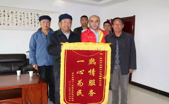 “這是我們的一片心意,感謝天然氣公司,讓我們在供暖期前用上天然氣?!?0月14日,湟源縣金水豪庭十八號樓6位住戶代表來到青海中油燃氣投資有限責任公司湟源公司將印有“熱情服務(wù)、一心為民”的錦旗送到總經(jīng)理李欣悅的手上。