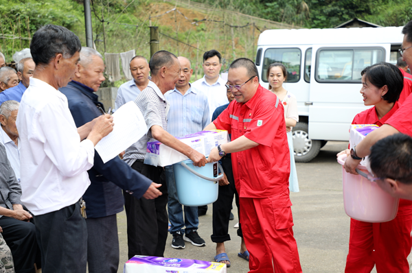 活動前與院裡溝通瞭解到老人們需要一些日常用品,公司立即購置水桶、洗衣粉、牙膏牙刷、洗手液、花露水、水杯、毛巾等等十多種類物資,院裡61位老人每人一份,總金額達八千元;在活動接近尾聲同志們齊心協(xié)力將帶去的物資現(xiàn)場分份,並分發(fā)至每位老人,同志們擔心老人家不方便,主動送物資到老人宿舍。