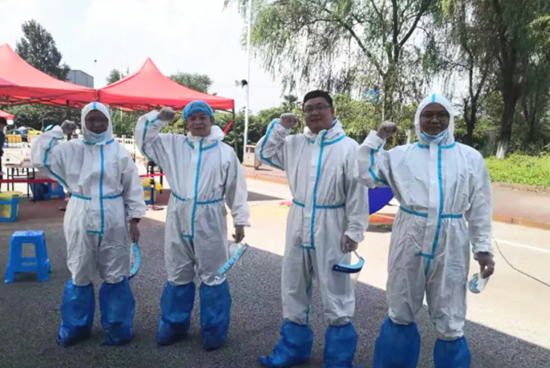 36℃的豔陽天下,密不透風的防護服變成了貼身的蒸籠,汗水順著臉頰向下淌,橡膠手套內(nèi)結滿了汗珠,即便靜坐不動,熱氣也蒸得人汗如雨下。儘管悶熱的防護服、炎熱的天氣令他們汗流浹背,但他們?nèi)匀荒瑘允亓?個小時,耐心為市民解答問題,指引市民填寫基本資訊,作分流引導,錄入採樣資訊…確保核酸採集工作有條不紊進行,為這一次的核酸檢測保駕護航。此次志願活動,展現(xiàn)了中油人的良好形象,以擔當詮釋初心,用行動踐行使命,真正為群眾辦實事,為防疫獻力量。