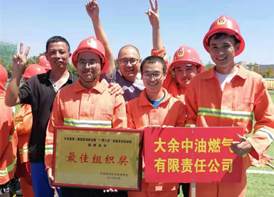 本次運(yùn)動(dòng)會(huì)比賽分為:闖關(guān)答題逃生操、原地著裝滅火操、兩盤水帶連接消火栓打靶操及4*50米消防槍接力賽四個(gè)項(xiàng)目,在比賽過程中,隊(duì)員們發(fā)揚(yáng)團(tuán)隊(duì)精神和集體榮譽(yù)感,本著“揮灑汗水,奮力拼搏”的精神,齊心協(xié)力,為公司爭(zhēng)光。通過緊張的角逐,大余公司從四十多個(gè)隊(duì)伍中脫穎而出,獲得了“最佳組織獎(jiǎng)”的好成績(jī)。