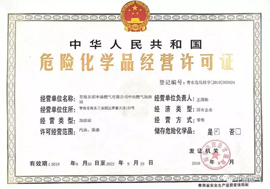 為使各項(xiàng)目達(dá)到合規(guī)化運(yùn)營條件,青海東部中油燃?xì)庥邢薰居谀陜?nèi)進(jìn)一步加大了與海東市政府、河湟新區(qū)管委會(huì)及平安區(qū)政府的工作協(xié)調(diào)力度,取得了較好的溝通效果,經(jīng)過近兩個(gè)月的積極溝通和努力,終于在近期取得了平西加油站《危險(xiǎn)化學(xué)品經(jīng)營許可證》。