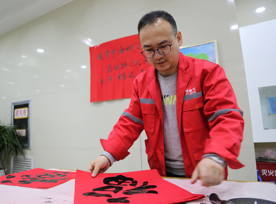 年年送春聯(lián),歲歲道祝福。每年為天然氣用戶書寫春聯(lián),是西寧公司的“傳統(tǒng)節(jié)目”之一,也是公眾服務(wù)企業(yè)文化實(shí)力的一種體現(xiàn)。因?yàn)槠綍r注重文化建設(shè),公司成立以來多次通過舉辦書畫攝影比賽,聘請書畫家上門教學(xué)指導(dǎo)等方式,不斷激勵和促進(jìn)員工中的書畫愛好者藝術(shù)水準(zhǔn)上臺階、提檔次。每年為用戶書寫春聯(lián),基本以書法水準(zhǔn)較高的員工為主,只有在員工實(shí)在抽調(diào)不出來時,才臨時邀請公司以外的書法家助陣。