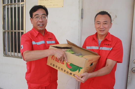 8月3日上午,泰州中油燃?xì)庥邢薰靖笨偨?jīng)理曹軍繁帶領(lǐng)綜合辦公室人員到一線(xiàn)開(kāi)展“送清涼”活動(dòng),為堅(jiān)守在基層崗位上的員工送上水果、飲料等防暑降溫物品。
