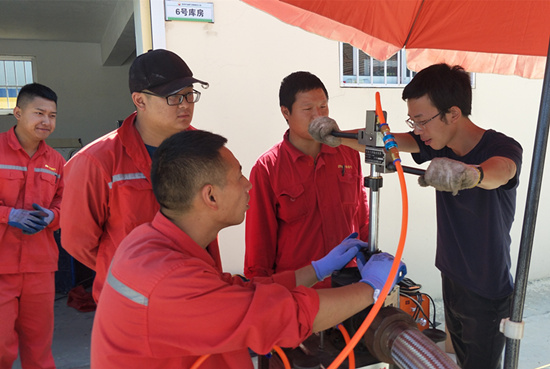 在培訓(xùn)中,廠家技術(shù)人員對(duì)參加培訓(xùn)人員現(xiàn)場(chǎng)進(jìn)行手把手指導(dǎo)。從設(shè)備的構(gòu)造到工藝原理,從拆卸步驟到發(fā)現(xiàn)問(wèn)題故障排除,全面細(xì)緻、一絲不茍的進(jìn)行講解。把複雜的不停輸帶壓開(kāi)孔設(shè)備講解的透明化、程式化、簡(jiǎn)單化,大大提高了參加培訓(xùn)人員的技能水準(zhǔn)。