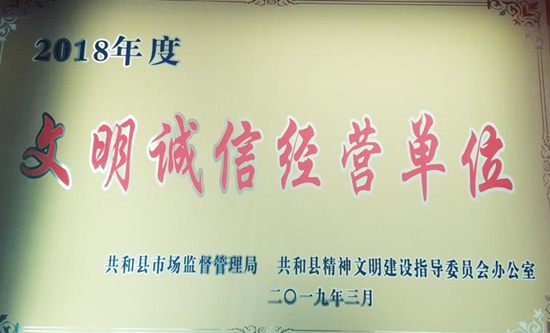 3月14日,海南州共和縣市場監(jiān)督管理局、共和縣精神文明建設(shè)指導委員會辦公室聯(lián)合授予海南州中油燃氣有限責任公司2018年度“文明誠信經(jīng)營單位”榮譽稱號。