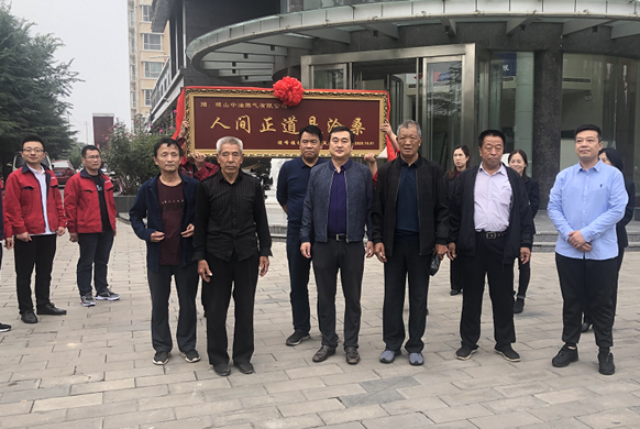 9月29日,“雙節(jié)”臨近一大早,稷山縣稷峰鎮(zhèn)楊趙村村兩委一班人在黨支部書記、村委主任及嘉誠社區(qū)負(fù)責(zé)人的帶領(lǐng)下將一面寫有“人間正道是滄?!钡呐曝宜偷金⑸街杏腿?xì)庥邢薰?,感謝公司以不忘初心、牢記煤改氣使命、敢於克服種種困難與阻力、心系使用者、不斷增強(qiáng)服務(wù)意識(shí)的工作態(tài)度。公司總經(jīng)理黃科代表稷山中油燃?xì)庥邢薰舅袏^戰(zhàn)在煤改氣一線的員工接受了這沉甸甸牌匾,隨後村兩委代表與公司代表在三樓會(huì)議室進(jìn)行了座談。